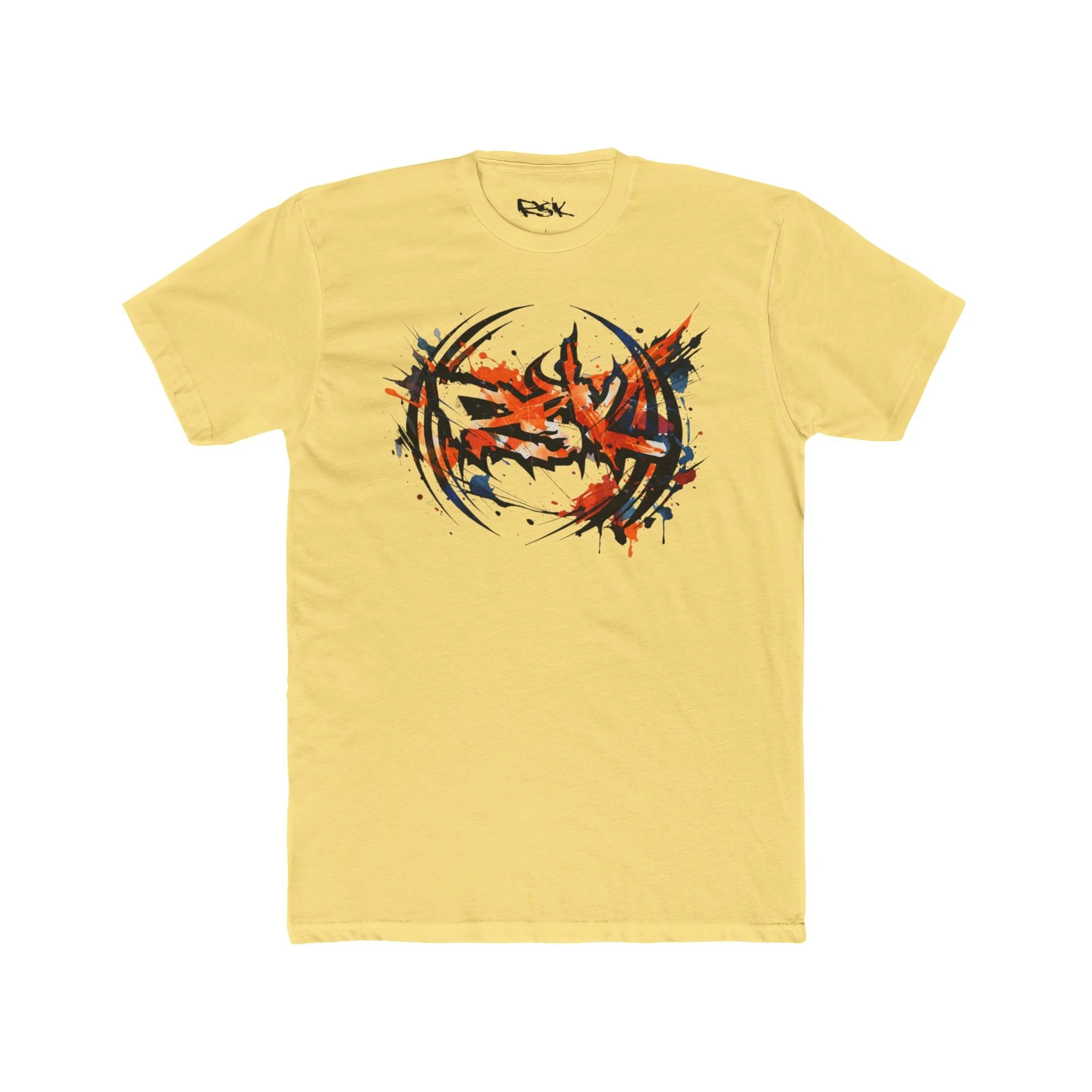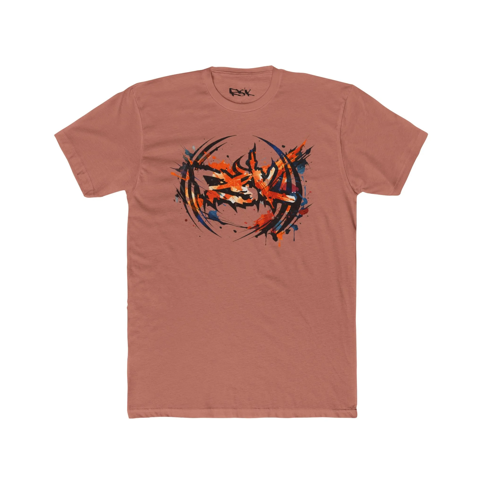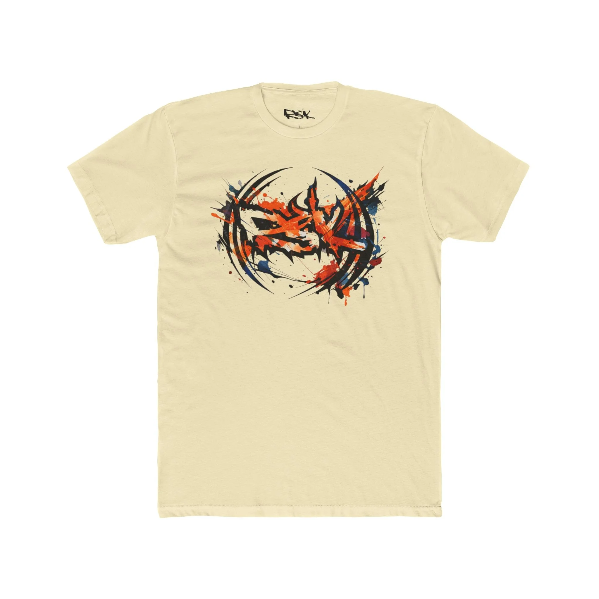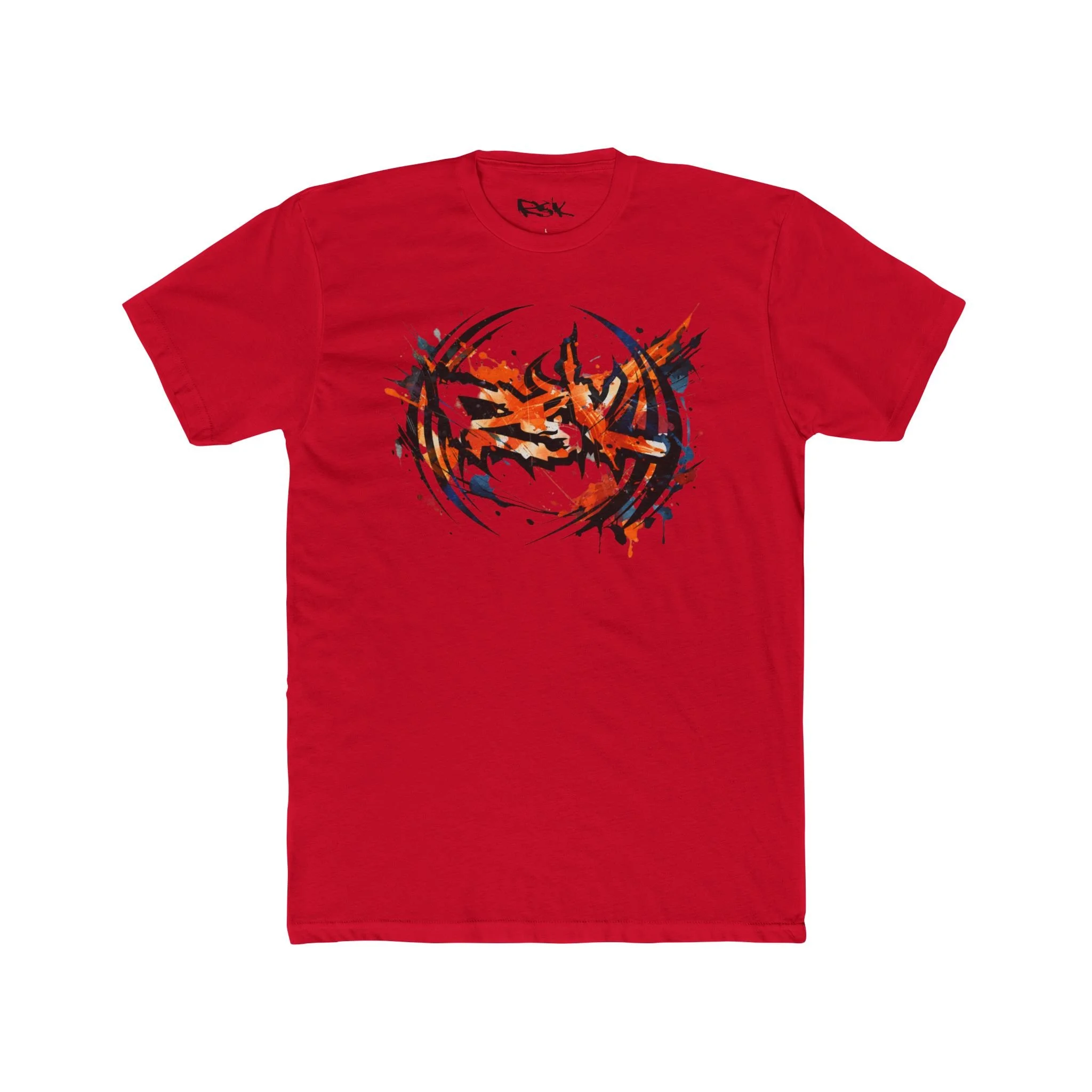 This lightweight cotton crew tee carries a bold, energetic graphic at the chest — a fiery, abstract emblem with splattered accents that reads like motion caught mid-explosion. It feels like a worn-in favorite from the first wear: breathable and easy to layer, with clean lines that keep the focus on the artwork. Wear it to shows, street hangs, or when you want to add a raw, animated edge to a simple outfit. The fit is classic and relaxed, so the print sits naturally across the chest without looking oversized or lost. Built to hold shape through regular wear, it’s a dependable canvas for a bold, art-forward statement.